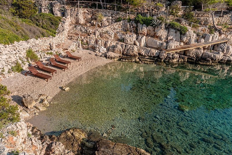 Under the century old pine trees bathed in stone lace, which is a symbol of human effort of Hvar farmers, the pearl of the island is on the beach of the most beautiful sea in the world.